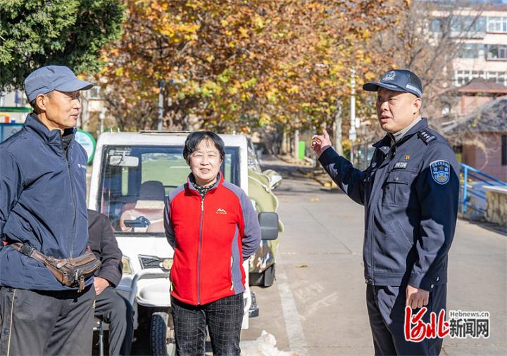 11月19日,赵剑锋(右一)在社区进行日常走访。河北日报记者 赵杰摄