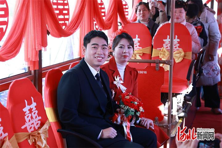 婚车是婚礼的重要组成部分,体现着婚俗观念。不久前,石家庄交投集团所属公交集团游5路车队推出了“主题定制婚车”服务。藁城这对新人婚庆用车,是该服务推出后的首秀。据游5路车队队长魏文杰介绍,为了办好这桩喜事,车队不仅调配了12米长的28座公交车,选派经验丰富的司机,还提前熟悉路线、按新人喜好装饰车厢,以专业与用心守护这份别样浪漫。新郎邓玉成表示:“‘公交婚车’里亲朋好友聚在一起,一路欢声笑语,氛围特别好。”