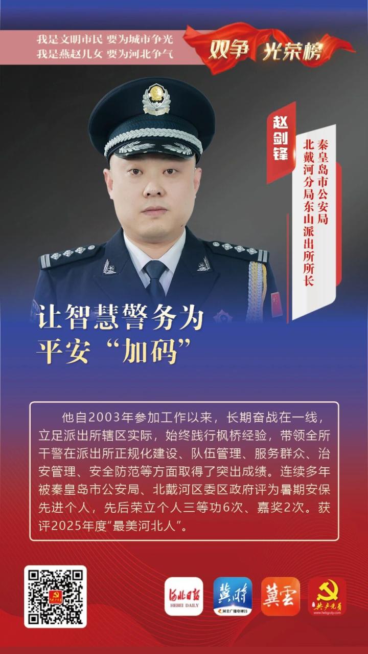 赵剑锋,中共党员,秦皇岛市公安局北戴河分局东山派出所所长。