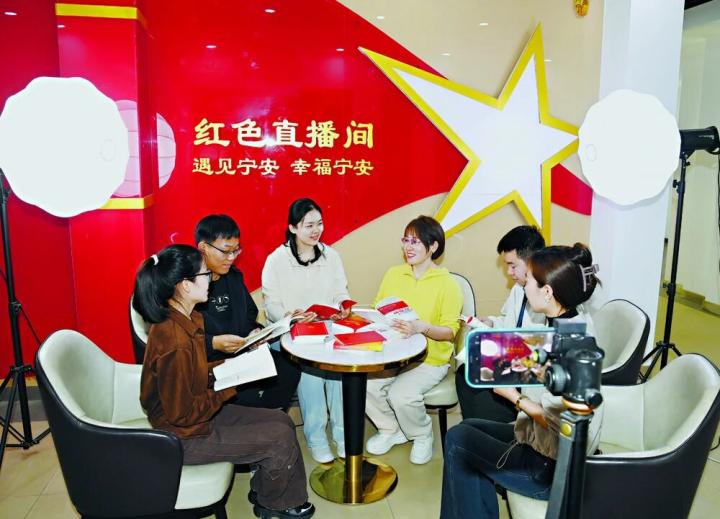 石家庄市新华区宁安街道推动文明宣传线上线下同步发力。图为该街道党群服务中心红色直播间正在开展“云端推荐优秀图书”活动。