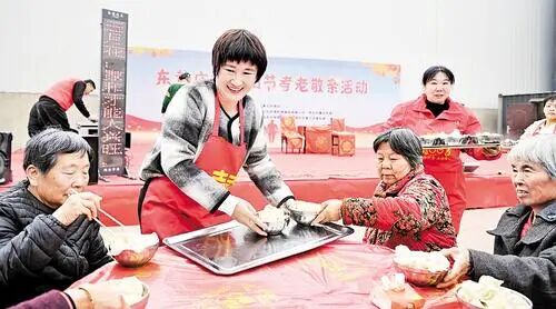 10月29日,邢台市任泽区东黄庄村举办孝老敬亲活动,志愿者为老人端上刚出锅的饺子。 河北日报记者 赵永辉摄