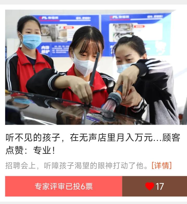 本次活动特邀全国百余位资深媒体人与公益人组成专家推荐团,为年度小微公益典范“把关”。所有候选案例均由“天天正能量”与全国合作媒体在2025年度共同发掘,均为扎根民间、在本职之外“向前一步”的普通人 。其中,纵览新闻报道的《点赞河北 | 暖心!沧州有家“无声汽车美容店”,为30余名残障学生提供就业岗位》成功入围。