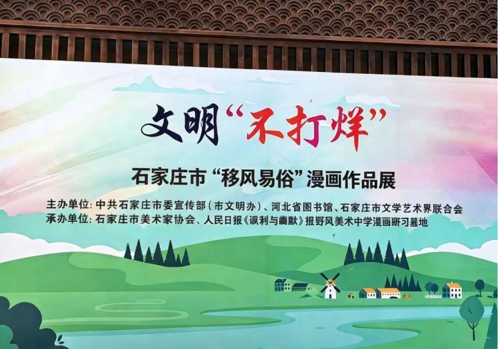 2025年12月25日,“文明‘不打烊’——石家庄市移风易俗漫画作品展”在河北省图书馆一楼云水展廊展厅正式开展。本次展览由市委宣传部(市文明办)、省图书馆、市文联主办,市美术家协会、人民日报社《讽刺与幽默》报野风美术中学漫画研习基地承办。