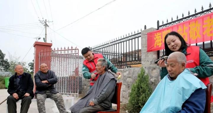 “太行电工”志愿服务队员为山区老人义务理发。康伟摄
