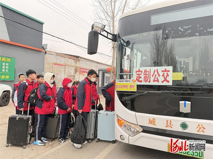 李化杨说,学校是寄宿制,好多同学家住远离县城的乡村,每次离校返校都是麻烦事。“我家到学校30公里,以前要么和附近同学花50元拼车,要么先坐车到威县车站,再换乘公交车去学校,带着行李来回折腾3个小时。”他说,现在有了定制公交接送,省时省力省钱,家长还放心。