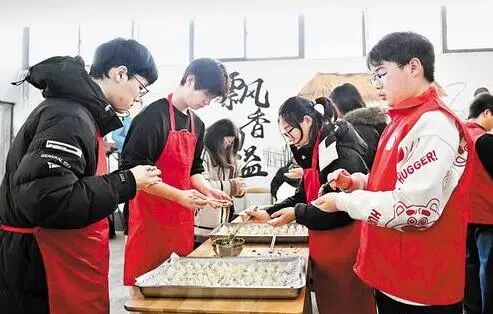 2月4日,邢台市南和区寒假回乡大学生志愿者在左李召村孝老食堂为老人包饺子。 本组图片由河北日报记者赵永辉摄