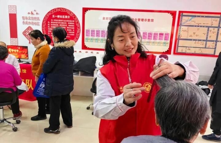 市义工协会志愿者为老人提供义剪服务。王峰摄