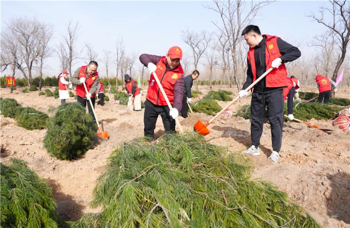 3月11日上午,邢台市襄都区干部群众来到邢襄生态园开展义务植树活动。大家挥锹铲土、扶苗填坑、踩土定植、提水浇灌,共栽植酸枣树苗200余株。