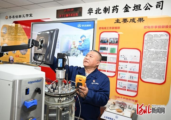 “这是细胞培养装置,在生产中温度控制不稳定。我们正在开展温度控制部分国产化替代,这是维修好的第五套。”工作室带头人、公司首席技师齐名和工作室成员杨少华正在讨论设备维修后的情况。