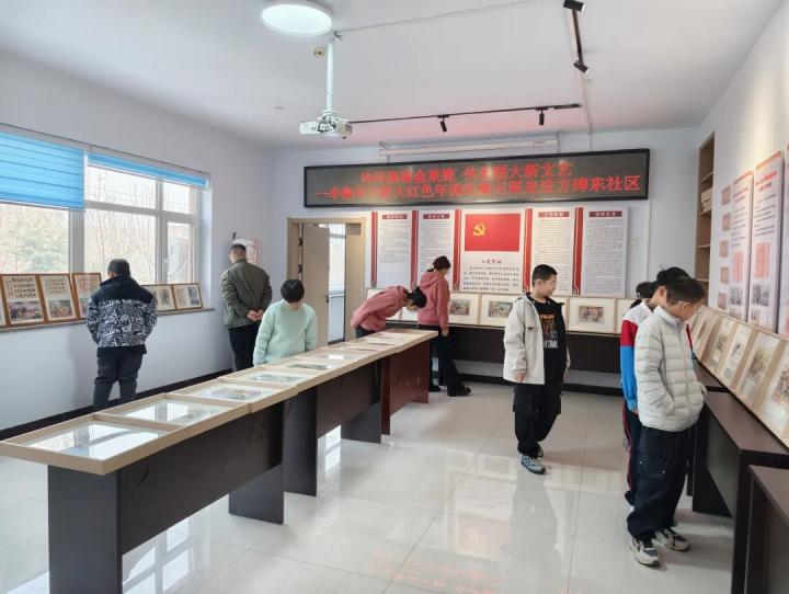 方碑东社区举办“诗洋画海金束鹿 传承联大新文艺”——辛集华北联大红色年画收藏巡展活动,红色年画与本土非遗交相辉映,有效丰富居民精神文化生活。