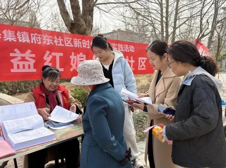 府东社区联合市新时代文明实践指导中心开展“公益红娘”进社区新时代文明实践志愿服务活动,公益红娘热情回应居民婚恋咨询,积极开展婚恋观引导与情感沟通指导等暖心服务,志愿者同步发放社区活动计划表,以文明实践助力家庭幸福与社区和谐。