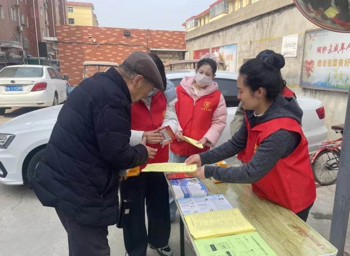 体育场社区联合市公安局开展新时代文明实践志愿服务活动,志愿者向居民发放法治反诈、公益红娘宣传页等资料,普及相关知识;同时积极宣传社区乒乓球赛报名事宜,点燃居民参与热情,共筑和谐美好社区。