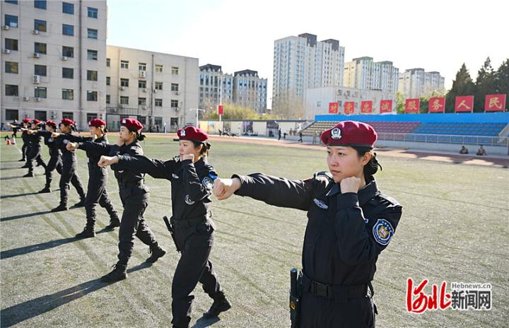 3月18日,石家庄市公安局巡警特警支队女子勤务大队队员在进行训练。 河北日报记者 史晟全摄