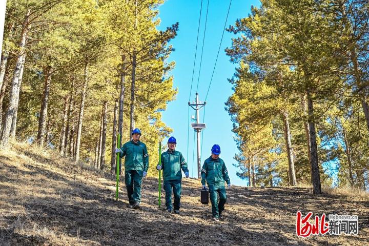 3月18日,国家电网冀北电力(承德塞罕坝)共产党员服务队队员巡查供电线路。 河北日报记者 田 明摄