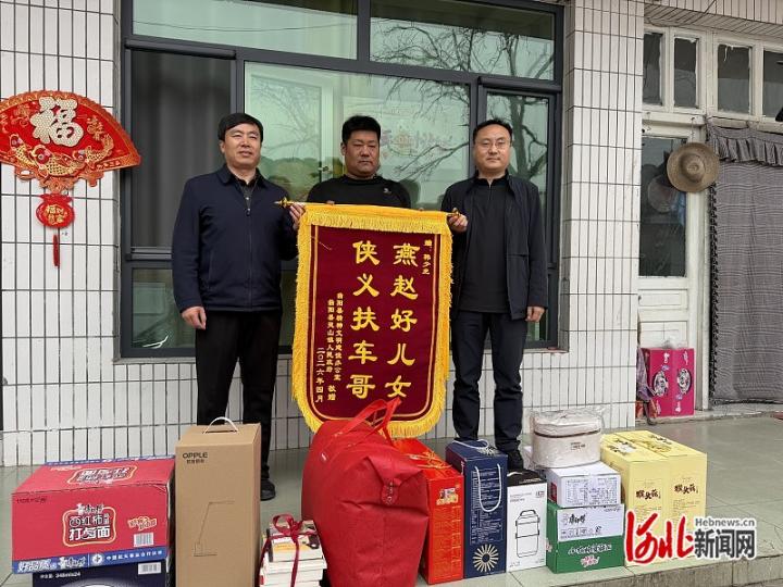 近日,河北保定曲阳县货车司机韩少虎在山东境内强风中用车身托住山东倾斜货车、护航近两小时的义举引发全网关注,被网友亲切称为“扶车哥”。经过几天奔波,韩少虎于4月9日下午顺利回到家乡曲阳。曲阳县文明办和灵山镇政府向其颁发锦旗,表彰他的暖心善举。
