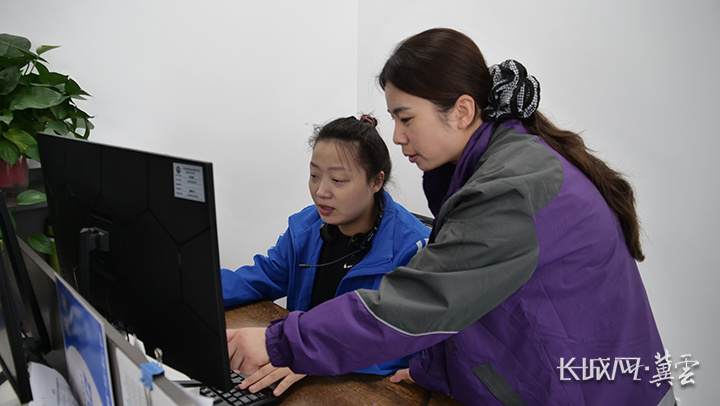 李桐桐(左一)在和同事交流业务。通讯员 李占朋 摄