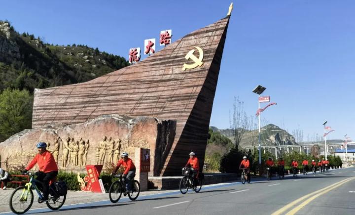 骑行爱好者沿抗大路骑行,感受春日太行的生机与魅力。韩文洲摄