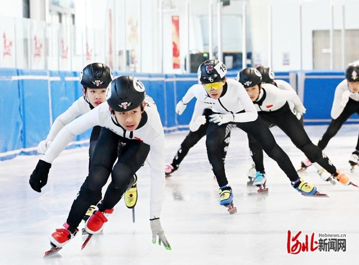 4月11日,雄安新区容东综合运动馆内,滑冰爱好者进行速滑训练。 河北日报记者 刘光昱摄